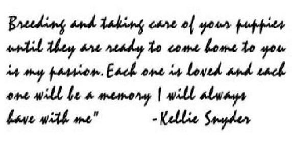 Contact us for future litter information! krs1965ok@aol.com or krsnyde@gmail.com In Loving Memory Of... In 2004 I was fortunate enough to meet Karen and Steve Shrock of Just Labs. They made it possible for me to start Kelder Labradors. They took me under their wing and became my mentors and taught me the importance of being a responsible breeder. I am forever grateful for their friendship and knowledge they shared with me, I miss them very much. -- Kellie Snyder KellieSnyder 419-795-1097 or 419-733-0782 krs1965ok@aol.com -- if no reply email is received from us -- Please do not hesitate to call us |